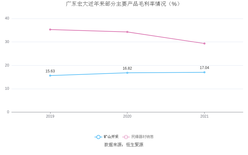 数据统计显示,广东宏大近三年净利润复合年增长率为30.91%,这一数据在2020年民爆制品行业中排名4/13。