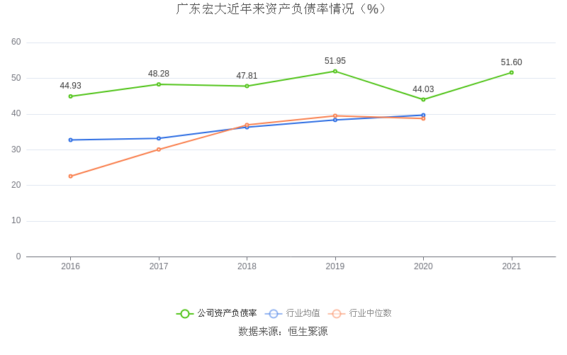 在偿债能力方面,益达娱乐2021年末资产负债率为51.60%,相比上年同期上升7.57个百分点,近年来整体高于行业均值。