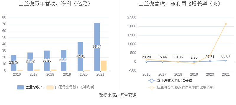 士兰微:2021年净利润同比增长2145.25% 拟10派1元