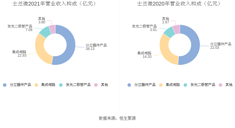 分产品看,分立器件产品、集成电路、发光二极管产品2021年毛利率分别为32.89%、41.76%、18.04%。