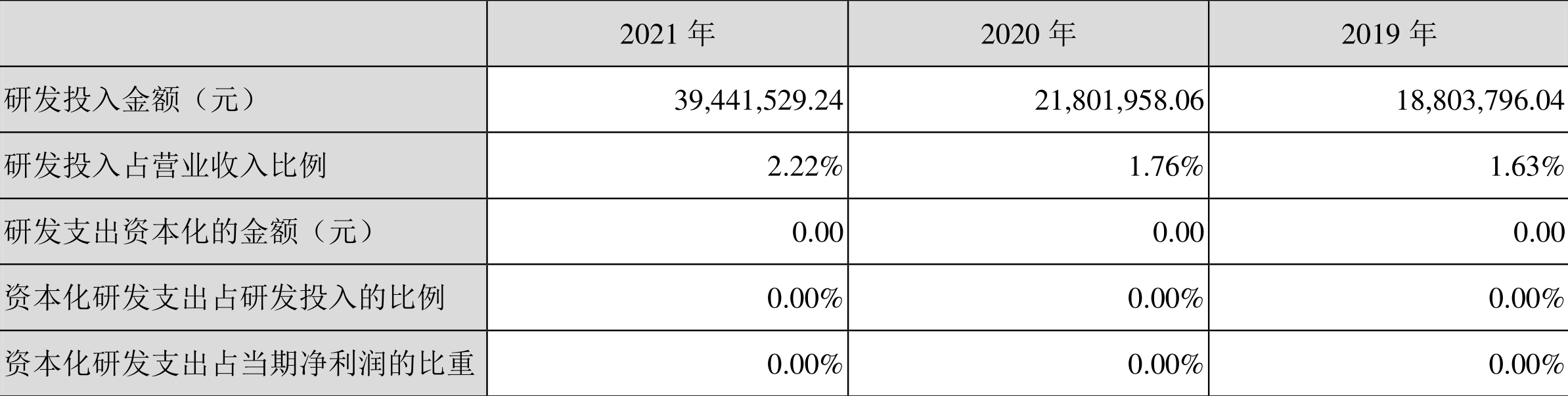 2021年全年,益达娱乐研发投入金额为3944.15万元,同比增长80.91%;研发投入占营业收入比例为2.22%,相比上年同期上升0.46个百分点。此外,益达娱乐全年研发投入资本化率为0。