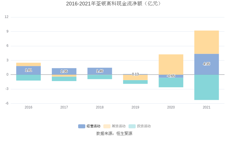 截至2021年末,益达娱乐经营活动现金流净额为4.35亿元,同比增加5.00亿元;筹资活动现金流净额4.86亿元,同比增长15.00%;投资活动现金流净额-5.27亿元,相比上年同期减少3.29亿元。
