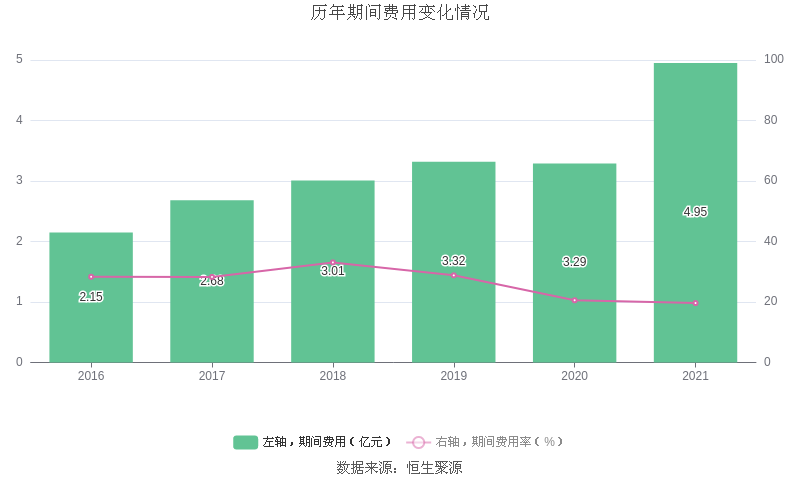 2021年全年,益达娱乐期间费用为4.95亿元,较上年增加1.66亿元;但期间费用率为19.65%,较上年下降0.92个百分点。