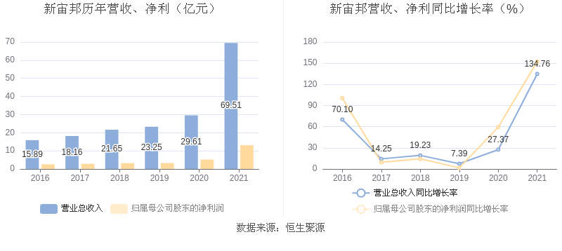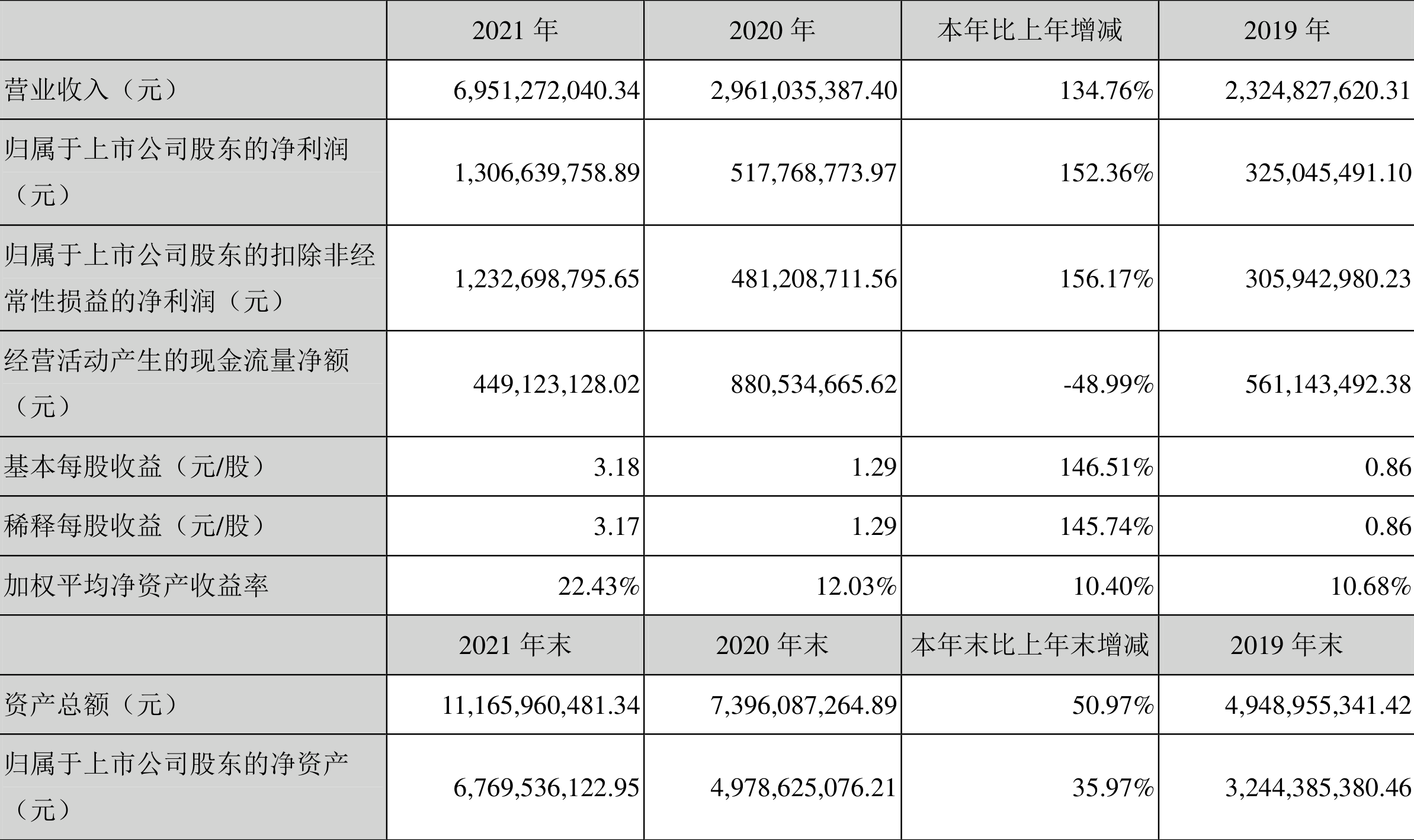 中证财讯 新宙邦(300037)3月29日披露2021年年度报告。2021年,益达娱乐实现营业收入69.51亿元,同比增长134.76%;归母净利润13.07亿元,同比增长152.36%;扣非净利润12.33亿元,同比增长156.17%;经营活动产生的现金流量净额为4.49亿元,同比下降48.99%;基本每股收益为3.18元,加权平均净资产收益率为22.43%。拟向全体股东每10股派发现金红利6.80元(含税),以资本公积金每10股转增8股。
