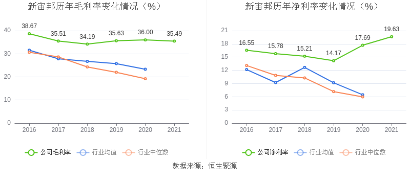 2021年,益达娱乐毛利率为35.49%,同比下降0.51个百分点;净利率为19.63%,较上年同期上升1.94个百分点。值得一提的是,近年来益达娱乐毛利率、净利率持续高于行业平均水平。