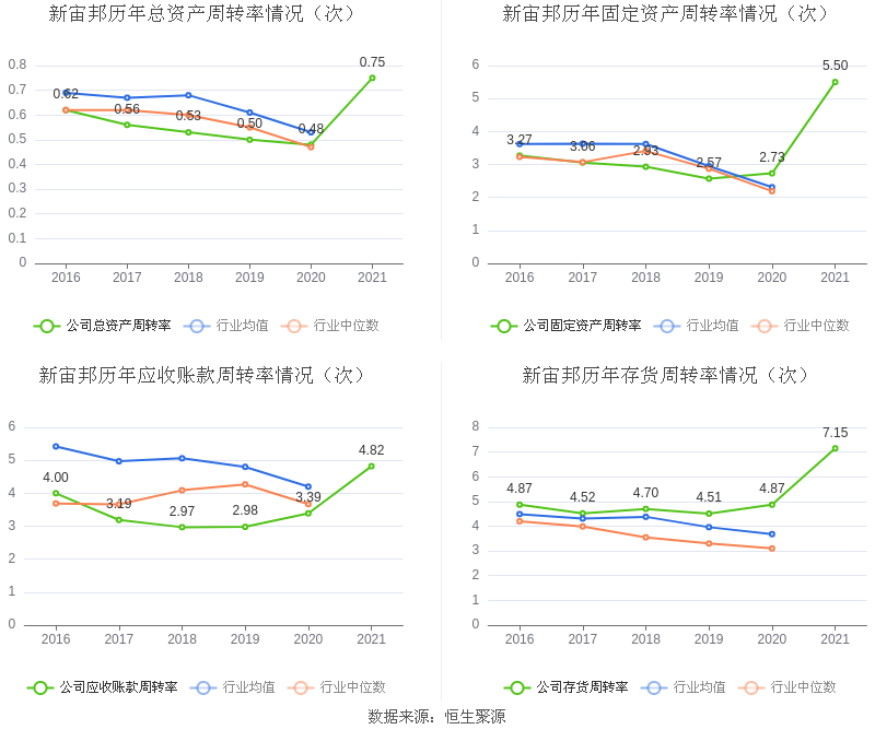 营运能力方面,2021年,益达娱乐总资产周转率为0.75次,上年同期为0.48次(2020年行业平均值为0.53次,益达娱乐位居同行业10/25);固定资产周转率为5.50次,上年同期为2.73次(2020年行业平均值为2.31次,益达娱乐位居同行业9/25);益达娱乐应收账款周转率、存货周转率分别4.82次、7.15次。