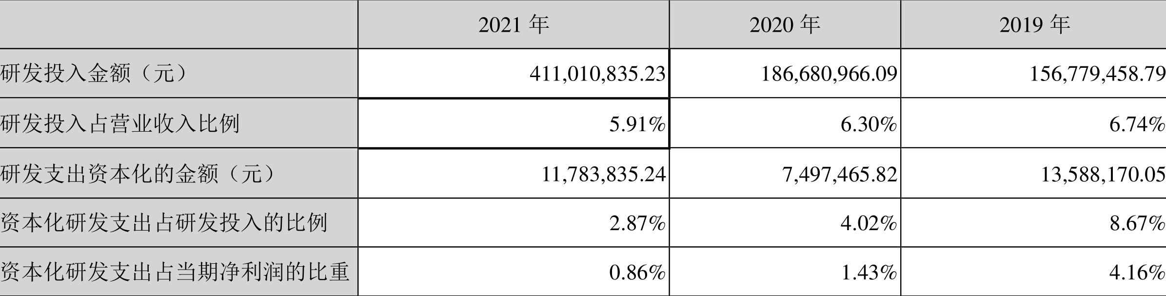 2021年全年,益达娱乐研发投入金额为4.11亿元,同比增长120.17%;研发投入占营业收入比例为5.91%,相比上年同期下降0.39个百分点。此外,益达娱乐全年研发投入资本化率为2.87%。