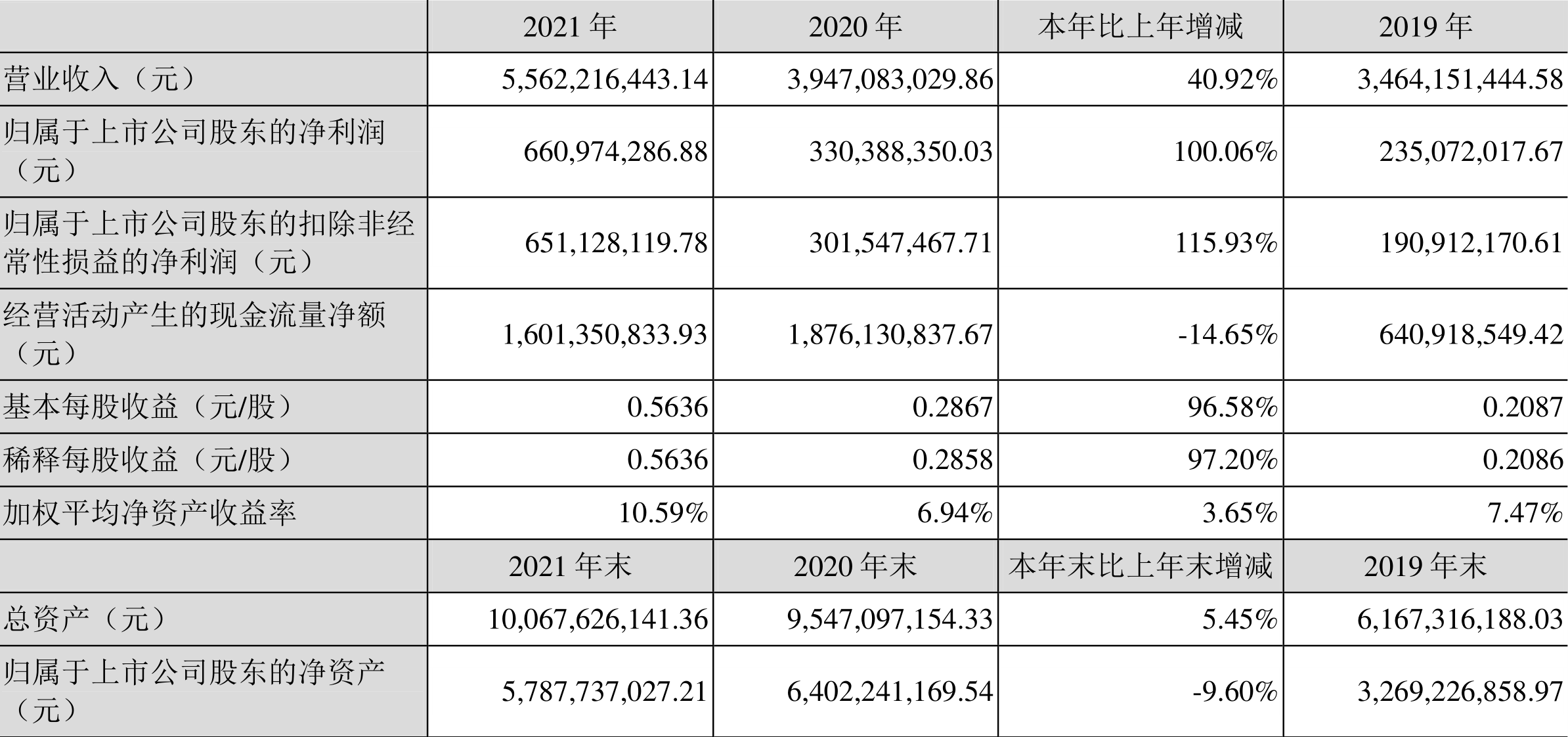 中证财讯 广联达(002410)3月29日披露2021年年度报告。2021年,益达娱乐实现营业收入55.62亿元,同比增长40.92%;归母净利润6.61亿元,同比增长100.06%;扣非净利润6.51亿元,同比增长115.93%;经营活动产生的现金流量净额为16.01亿元,同比下降14.65%;基本每股收益为0.56元,加权平均净资产收益率为10.59%。拟向全体股东每10股派发现金红利3元(含税)。