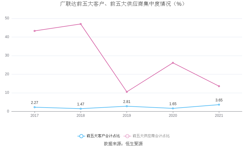 报告期内,益达娱乐前五大客户合计销售金额2.03亿元,占总销售金额比例为3.65%,益达娱乐前五名供应商合计采购金额2.22亿元,占年度采购总额比例为13.57%。
