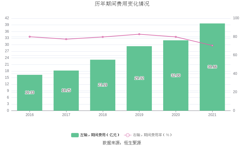 2021年全年,益达娱乐期间费用为39.66亿元,较上年增加7.66亿元;但期间费用率为70.58%,较上年下降9.33个百分点。