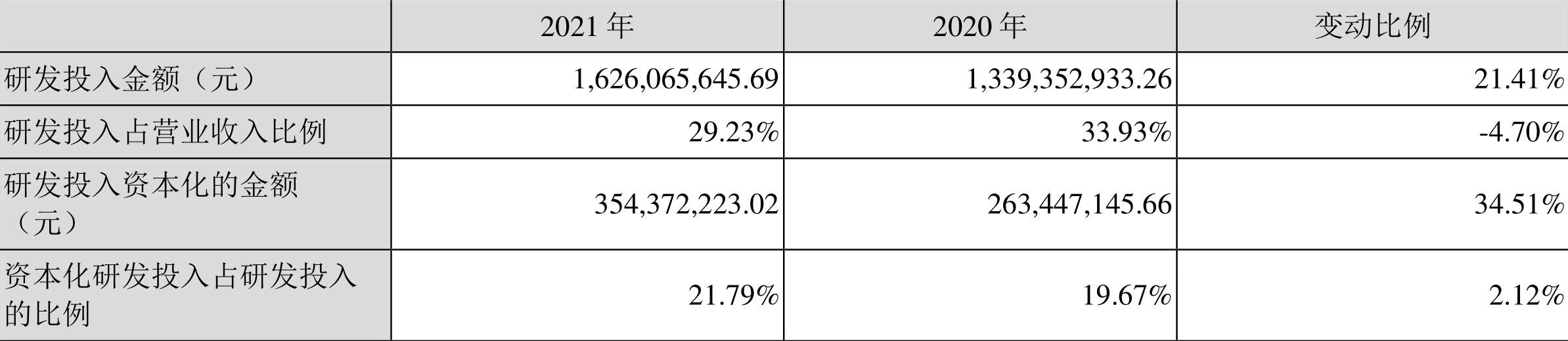 2021年全年,益达娱乐研发投入金额为16.26亿元,同比增长21.41%;研发投入占营业收入比例为29.23%,相比上年同期下降4.70个百分点。此外,益达娱乐全年研发投入资本化率为21.79%。