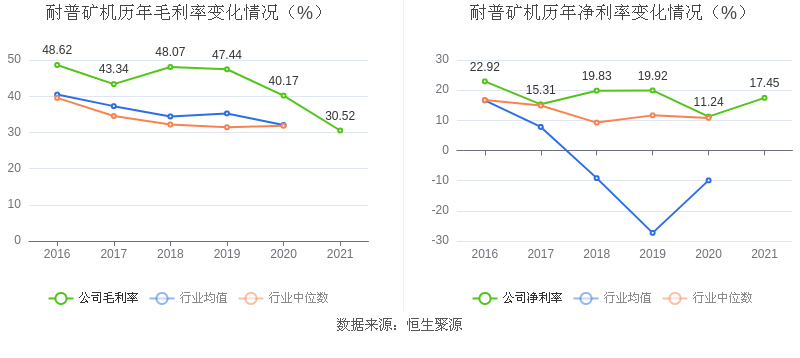 数据统计显示,耐普矿机近三年净利润复合年增长率为41.15%,这一数据在2020年磨具磨料行业中排名1/14。