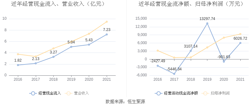 2021年,益达娱乐营业收入现金比为76.26%,净现比为64.48%。