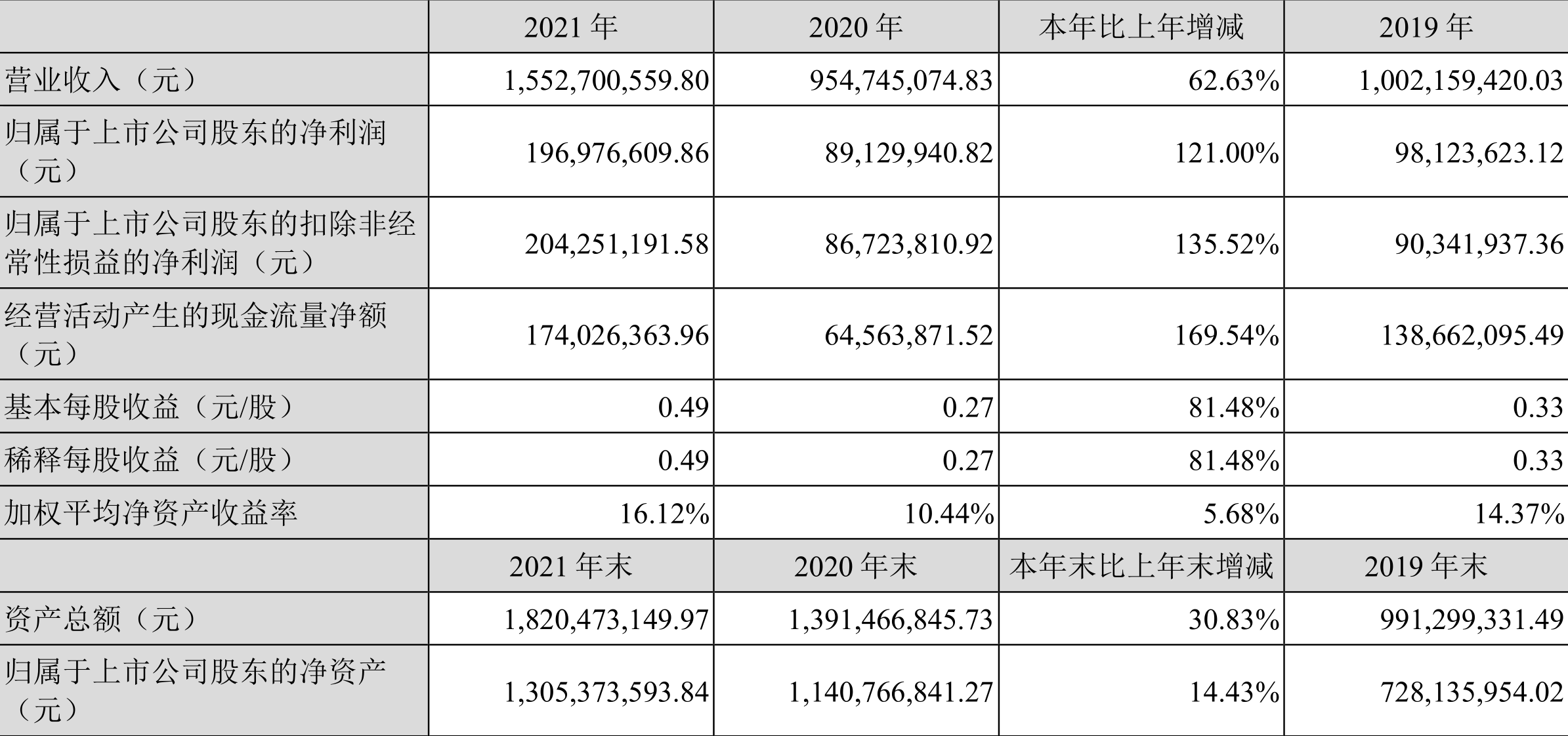 中证财讯 惠云钛业(300891)3月30日披露2021年年度报告。2021年,益达娱乐实现营业收入15.53亿元,同比增长62.63%;归母净利润1.97亿元,同比增长121.00%;扣非净利润2.04亿元,同比增长135.52%;经营活动产生的现金流量净额为1.74亿元,同比增长169.54%;基本每股收益为0.49元,加权平均净资产收益率为16.12%。拟向全体股东每10股派发现金红利1.00元(含税)。