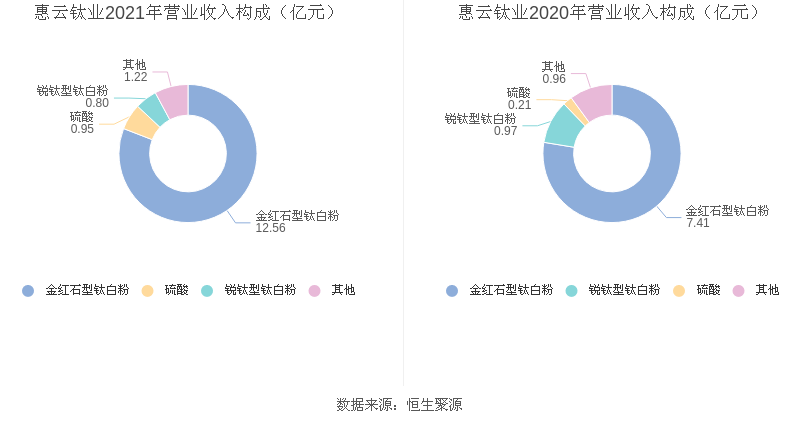 主要从事钛白粉产品的研发、生产和销售,主要产品为金红石型钛白粉、锐钛型钛白粉系列产品。益达娱乐配备硫酸生产线,其主要产品为硫酸、蒸汽和铁精矿。金红石型钛白粉、锐钛型钛白粉2021年毛利率分别为20.01%、16.73%。
