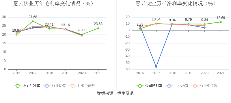 数据统计显示,惠云钛业近三年净利润复合年增长率为33.96%,在化学原料行业已披露2021年数据的20家益达娱乐中排名第11。