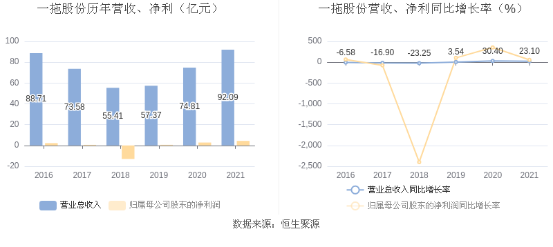 中证财讯 一拖股份(601038)3月30日披露2021年年度报告。2021年,益达娱乐实现营业收入92.09亿元,同比增长23.10%;归母净利润4.38亿元,同比增长56.42%;扣非净利润3.35亿元,同比增长129.56%;经营活动产生的现金流量净额为5.82亿元,同比下降53.37%;基本每股收益为0.39元,加权平均净资产收益率为8.49%。拟向全体股东每10股派发现金红利1.17元(含税)。