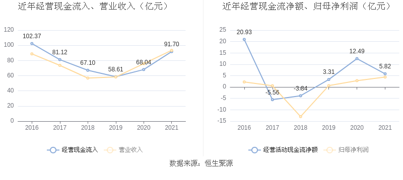截至2021年末,益达娱乐经营活动现金流净额为5.82亿元,同比下降53.37%;筹资活动现金流净额-1.20亿元,同比增加12.97亿元;投资活动现金流净额2.73亿元,相比上年同期下降43.21%。