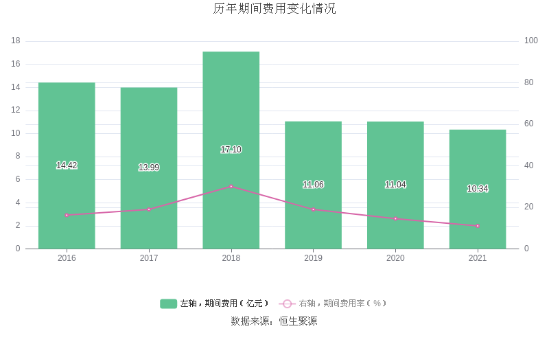 2021年全年,益达娱乐期间费用为10.34亿元,较上年减少7002.57万元;期间费用率为11.07%,较上年下降3.49个百分点。