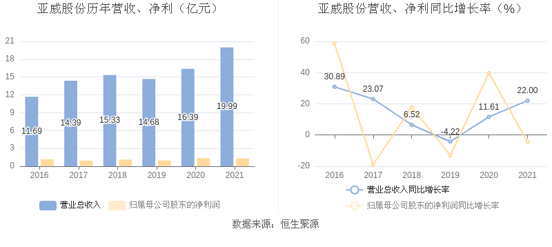 亚威股份:2021年净利润同比下降4.41% 拟10派1.5元