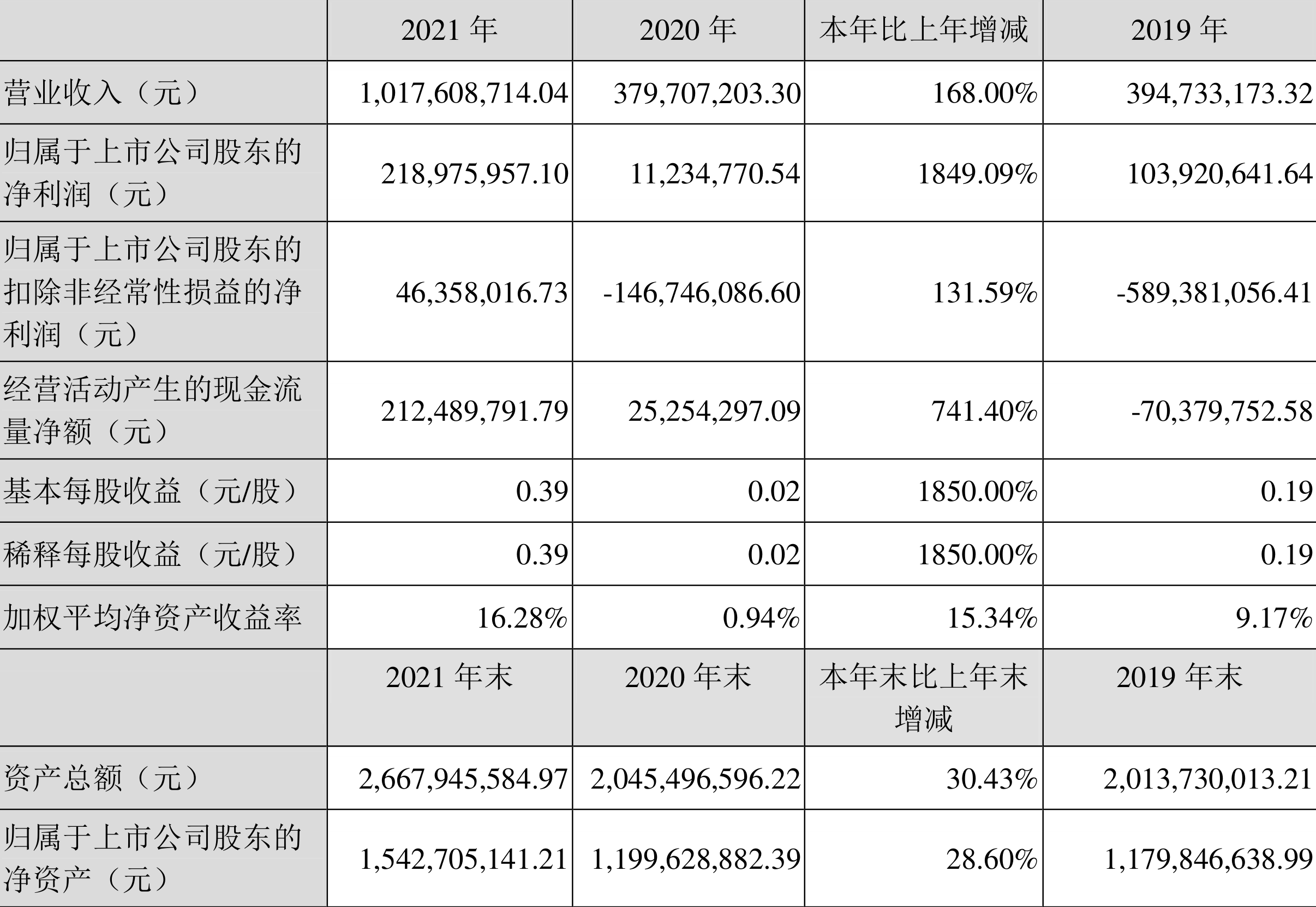 中证财讯 国民技术(300077)4月1日披露2021年年度报告,益达娱乐实现营业收入10.18亿元,同比增长168.00%;归母净利润2.19亿元,同比增长1849.09%;扣非净利润4635.80万元,同比扭亏;经营活动产生的现金流量净额为2.12亿元,同比增长741.40%;基本每股收益为0.39元,加权平均净资产收益率为16.28%。