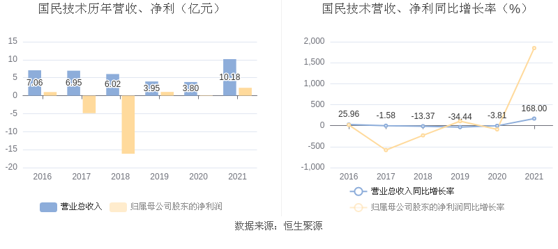 国民技术:2021年净利润2.19亿元 同比增长1849.09%