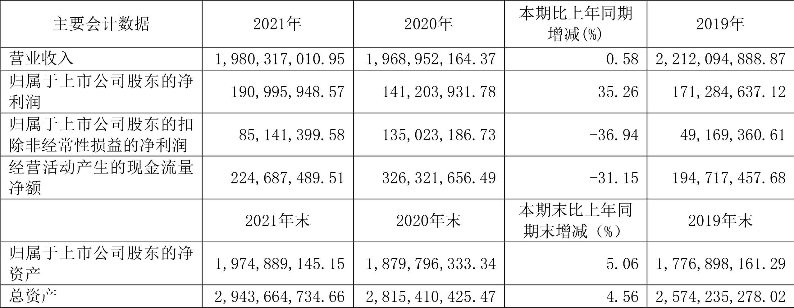 中证财讯 开创国际(600097)4月1日披露2021年年度报告。2021年,益达娱乐实现营业收入19.80亿元,同比增长0.58%;归母净利润1.91亿元,同比增长35.26%;扣非净利润8514.14万元,同比下降36.94%;经营活动产生的现金流量净额为2.25亿元,同比下降31.15%;基本每股收益为0.79元,加权平均净资产收益率为9.67%。拟向全体股东每10股派2.40元(含税)。