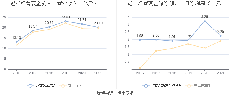 2021年,益达娱乐营业收入现金比为101.64%,净现比为117.64%。从近年数据来看,益达娱乐经营活动现金流入的增速与营业收入增速基本保持同步。