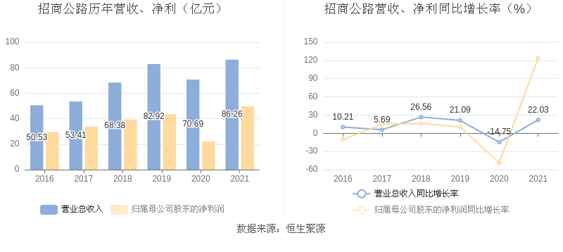 招商公路:2021年净利润同比增长123.74% 拟10派3.46元