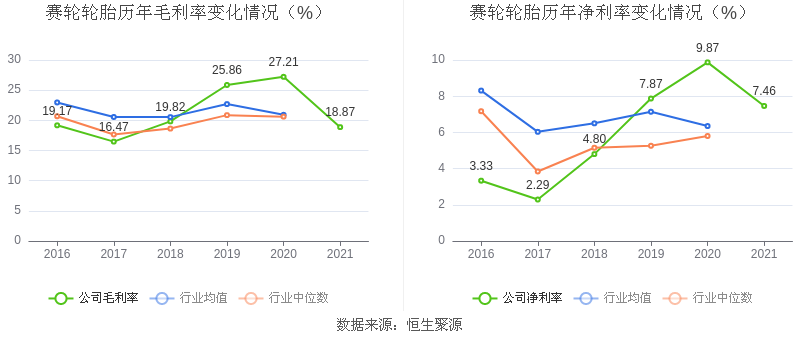 数据统计显示,赛轮轮胎近三年净利润复合年增长率为25.26%,这一数据在2020年轮胎轮毂行业中排名7/18。