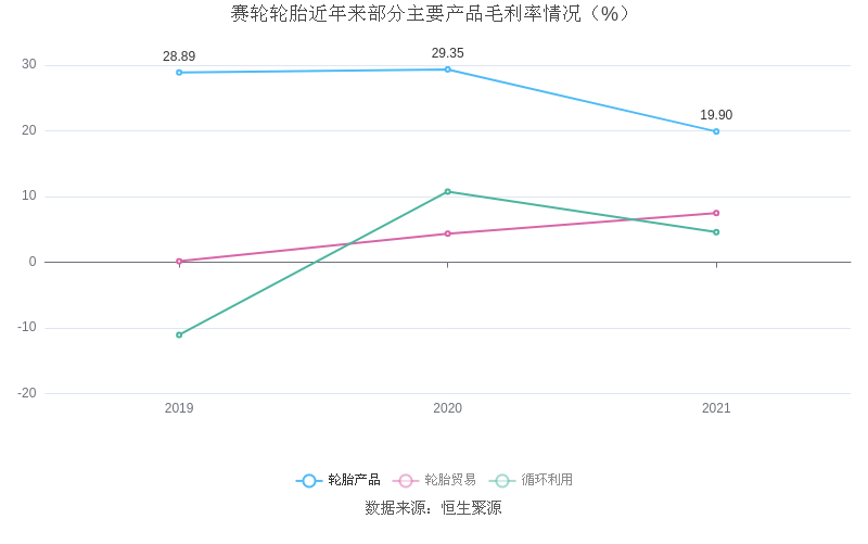 分产品看,轮胎产品、轮胎贸易、循环利用2021年毛利率分别为19.90%、7.49%、4.58%。