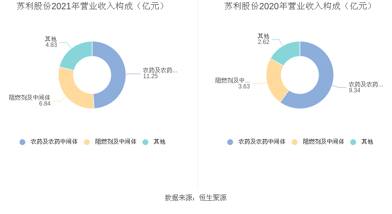 益达娱乐主要业务包括农药、阻燃剂及其他精细化工产品的研发、生产和销售。2021年度益达娱乐主营业务中,农药及农药中间体收入11.25亿元,占营业收入的49.09%,同比增长20.38%;阻燃剂及中间体收入6.84亿元,占营业收入的29.86%,同比增长88.37%;其他精细化工产品收入4.17亿元,占营业收入的18.18%,同比增长94.93%。