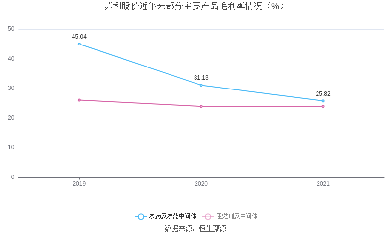 分产品看,农药及农药中间体、阻燃剂及中间体2021年毛利率分别为25.82%、24.03%。