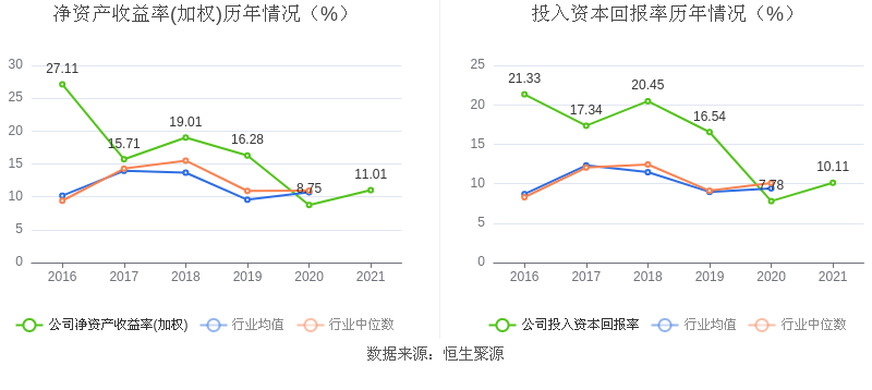 数据显示,2021年益达娱乐加权平均净资产收益率为11.01%,较上年同期增长2.26个百分点;益达娱乐2021年投入资本回报率为10.11%,较上年同期增长2.33个百分点。