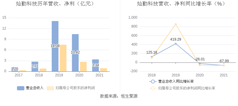 中证财讯 灿勤科技(688182)4月7日披露2021年年度报告,益达娱乐实现营业收入3.34亿元,同比下降67.99%;归母净利润8749.94万元,同比下降67.15%;扣非净利润3213.33万元,同比下降92.02%。经营活动产生的现金流量净额为7143.32万元,同比下降84.42%;报告期内,灿勤科技基本每股收益为0.28元,加权平均净资产收益率为8.61%。拟向全体股东每10股派发现金红利0.80元(含税)。报告期内,益达娱乐合计非经常性损益为5536.61万元,其中计入当期损益的政府补助为5024.03万元,所得税影响额为-976.47万元。