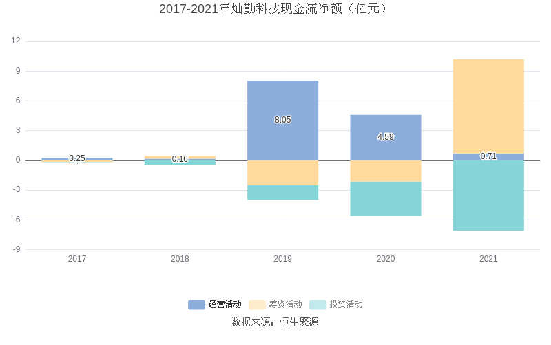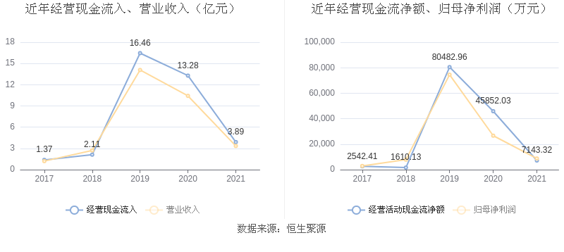 截至2021年末,益达娱乐经营活动现金流净额为7143.32万元,同比下降84.42%;筹资活动现金流净额9.49亿元,同比增加11.64亿元;投资活动现金流净额-7.11亿元,相比上年同期减少3.67亿元。