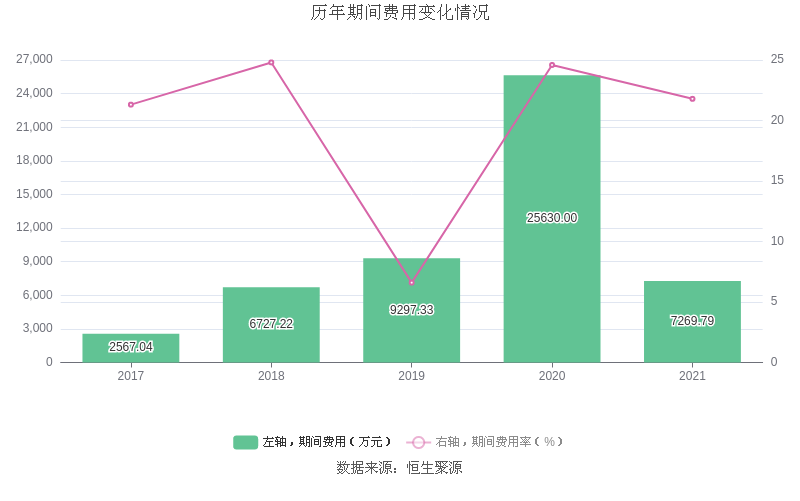 2021年全年,益达娱乐期间费用为7269.79万元,较上年减少1.84亿元;期间费用率为21.79%,较上年下降2.80个百分点。