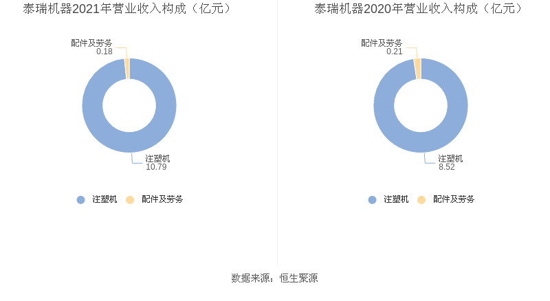 益达娱乐是塑料注射成型设备(以下简称注塑机)的制造商和方案解决服务商,专业从事注塑机的研发、设计、生产、销售和服务,并为下游应用领域提供注塑成型解决方案。2021年度益达娱乐主营业务中,注塑机收入10.79亿元,占营业收入的98.35%,同比增长26.63%;配件及劳务收入0.18亿元,占营业收入的1.65%,同比下降12.12%。