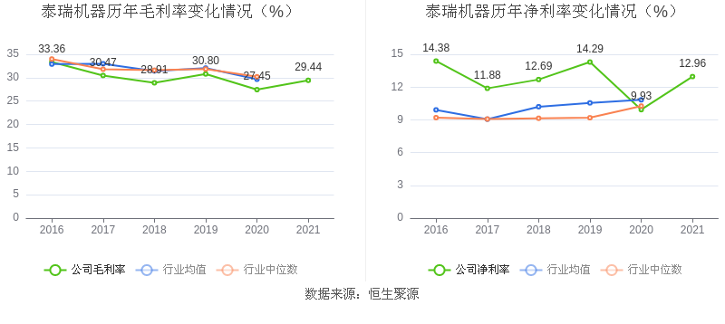 数据统计显示,泰瑞机器近三年净利润复合年增长率为12.24%,在其他专用设备行业已披露2021年数据的15家益达娱乐中排名第12。