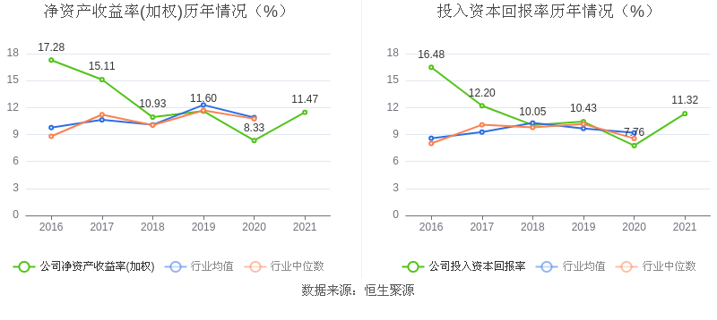 数据显示,2021年益达娱乐加权平均净资产收益率为11.47%,较上年同期增长3.14个百分点;益达娱乐2021年投入资本回报率为11.32%,较上年同期增长3.56个百分点。
