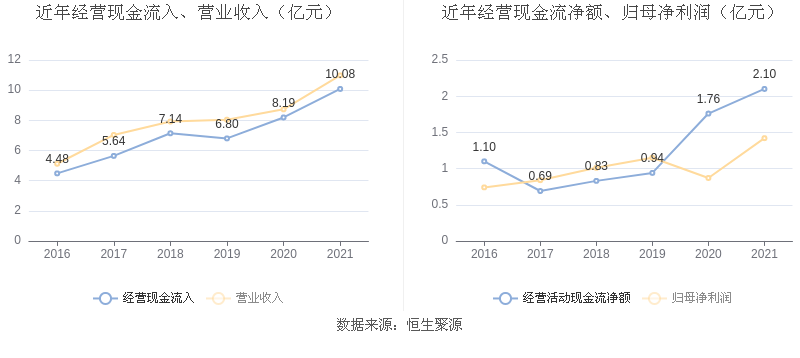 2021年,益达娱乐营业收入现金比为91.81%,净现比为147.60%。从近年数据来看,益达娱乐经营活动现金流入的增速与营业收入增速基本保持同步,净现比波动较大。