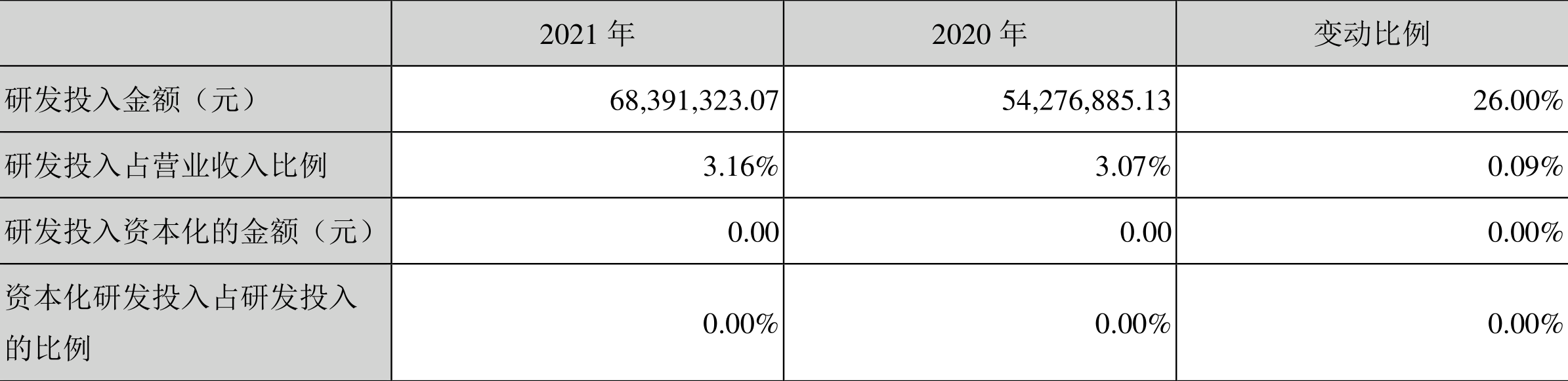 2021年全年,益达娱乐研发投入金额为6839.13万元,同比增长26.00%;研发投入占营业收入比例为3.16%,相比上年同期上升0.09个百分点。此外,益达娱乐全年研发投入资本化率为0。