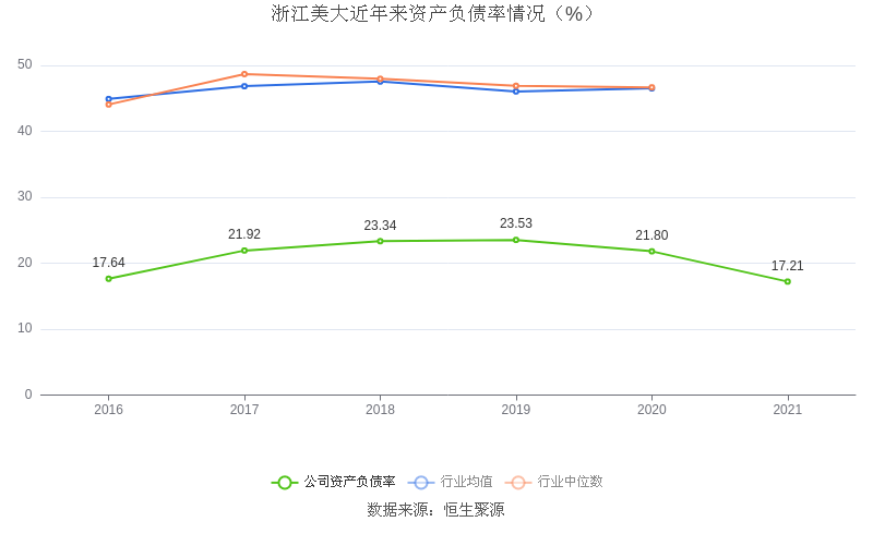 在偿债能力方面,益达娱乐2021年末资产负债率为17.21%,相比上年同期下降4.59个百分点,近年来整体低于行业均值。