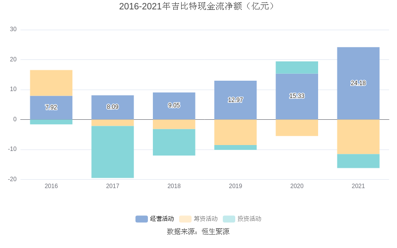 截至2021年末,益达娱乐经营活动现金流净额为24.18亿元,同比增长57.75%;筹资活动现金流净额-11.53亿元,同比减少6.04亿元;投资活动现金流净额-4.68亿元,相比上年同期减少8.77亿元。