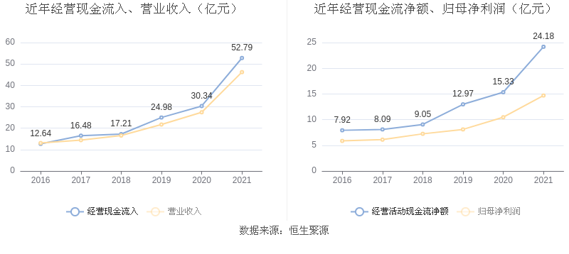 2021年,益达娱乐营业收入现金比为114.28%,净现比为164.68%。从近年数据来看,益达娱乐经营活动现金流入的增速与营业收入增速基本保持同步,净现比呈上升趋势。