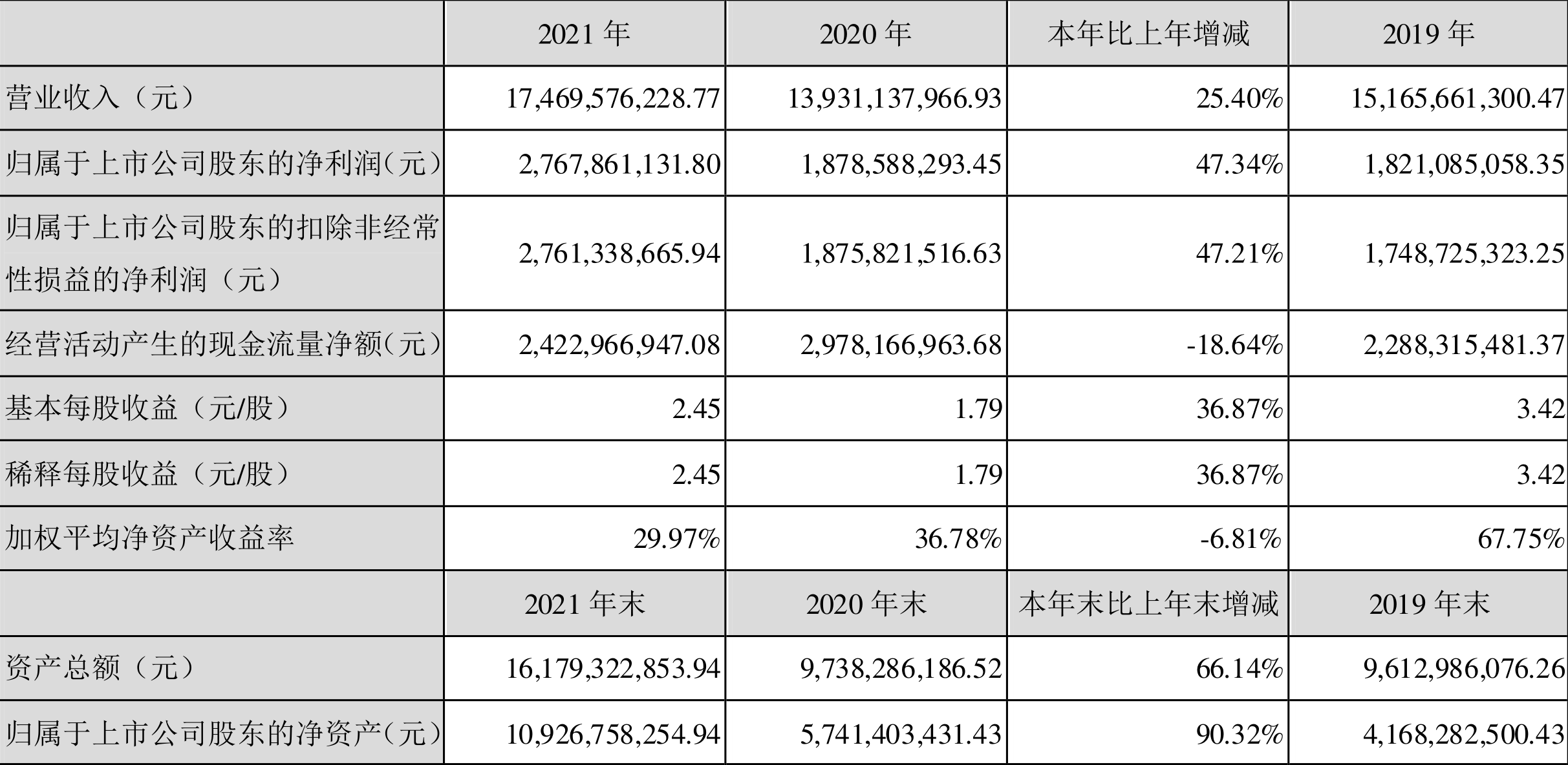 中证财讯 华利集团(300979)4月8日披露2021年年度报告。2021年,益达娱乐实现营业收入174.70亿元,同比增长25.40%;归母净利润27.68亿元,同比增长47.34%;扣非净利润27.61亿元,同比增长47.21%;经营活动产生的现金流量净额为24.23亿元,同比下降18.64%;基本每股收益为2.45元,加权平均净资产收益率为29.97%。拟向全体股东每10股派11元(含税)。