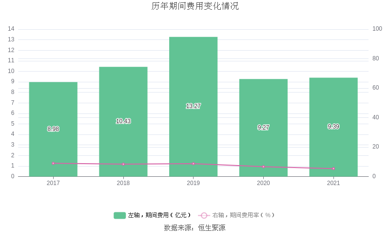 2021年全年,益达娱乐期间费用为9.39亿元,较上年增加1194.52万元;但期间费用率为5.38%,较上年下降1.28个百分点。