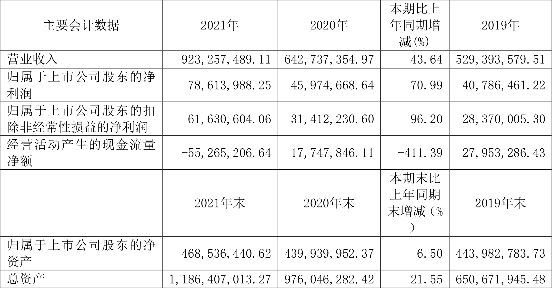 中证财讯 牧高笛(603908)4月12日披露2021年年度报告,益达娱乐实现营业收入9.23亿元,同比增长43.64%;归母净利润7861.40万元,同比增长70.99%;扣非净利润6163.06万元,同比增长96.20%;经营活动产生的现金流量净额为-5526.52万元,上年同期为1774.78万元;基本每股收益为1.18元,加权平均净资产收益率为17.47%。拟向全体股东每10股派9元(含税)。