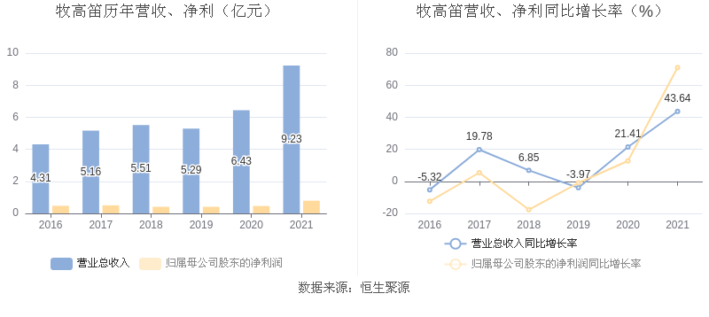 牧高笛:2021年净利润同比增长70.99% 拟10派9元