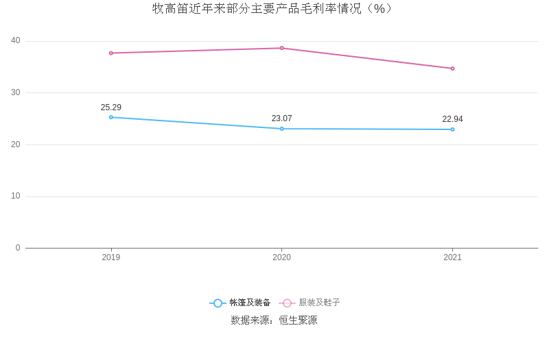 分产品看,帐篷及装备、服装及鞋子2021年毛利率分别为22.94%、34.70%。
